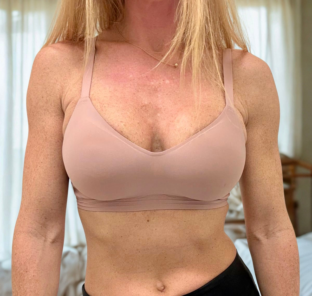 "Really comfy sleep bra for breastfeeding , fabric is so soft and you can barely feel you have it on."